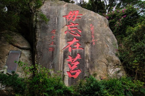 - 【太武山健行之旅】太武山別稱「仙山」,到處為嶙峋蒼勁的花崗岩石,沿著為紀念對金門有卓越獻而命名的玉章路爬上,可以清晰的瞭望金門全島的外貌,沿途經過〈鄭成功奕祺處〉,可以觀看其鎮守與練兵之處;再經過金門最著名的地標,由先總統 蔣公所親自題字的〈毋忘在莒勒石〉,高十餘丈,字跡勁拔,氣勢雄偉,意在期 勉刻苦自立。
