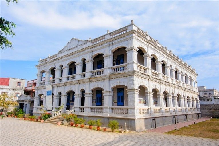 - 【陳景蘭洋樓】金門旅居新加坡僑商陳景蘭於公元1921年興建的洋樓宅第,也是金門規模最大的一棟洋樓,是金門華僑回鄉興建「番仔樓」代表作。淨白色的外觀讓 陳 景蘭洋樓多添了些洋味,精緻的雕花與對稱拱門,猶如西洋建 築的工法。位於金門島中部的